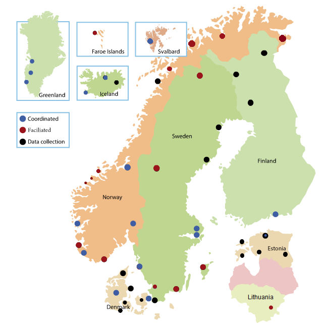 within Denmark, Estonia, Faroe Islands, Finland, Greenland, Iceland, Lithuania, Norway, Svalbard and Sweden.